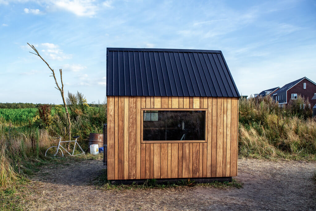 Na jaren werk als conceptontwikkelaar in het westen van land, waar Alexander oude kantoorgebouwen een nieuw leven gaf, was het tijd voor zijn eigen huis in Drenthe. “Weg van al het steen en lawaai, naar een plek met letterlijk meer aarde.” En een houten huis. Hij bekleedde een schuurwoning met Platowood Fraké. De woning staat op het terrein van een oude boerderij met veel grond en waar de natuur vrij spel heeft.