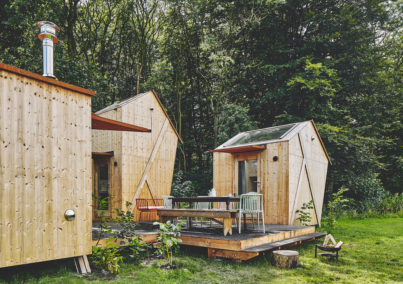 Alle deuren en kozijnen van de vakantiehuisjes Warthog Family en La Serre zijn gemaakt van Platowood Fraké. Gidus Hopmans, mede-eigenaar van 'Het Bos Roept! en tevens ontwerper van de huisjes: "Circulair bouwen is erg belangrijk op ons terrein. We zijn op zoek gegaan naar kozijnen die niet afgewerkt hoefden te worden, dus geen onderhoud behoefden, en tevens milieuvriendelijk geproduceerd waren. Zo kwamen we op gemodificeerd kozijnhout uit. We hebben referentieprojecten opgevraagd bij Platowood en uiteindelijk voor Platowood Fraké kozijnen gekozen. De kozijnen hebben geen onderhoud nodig, wat veel afval scheelt, en zullen mooi natuurlijk vergrijzen."