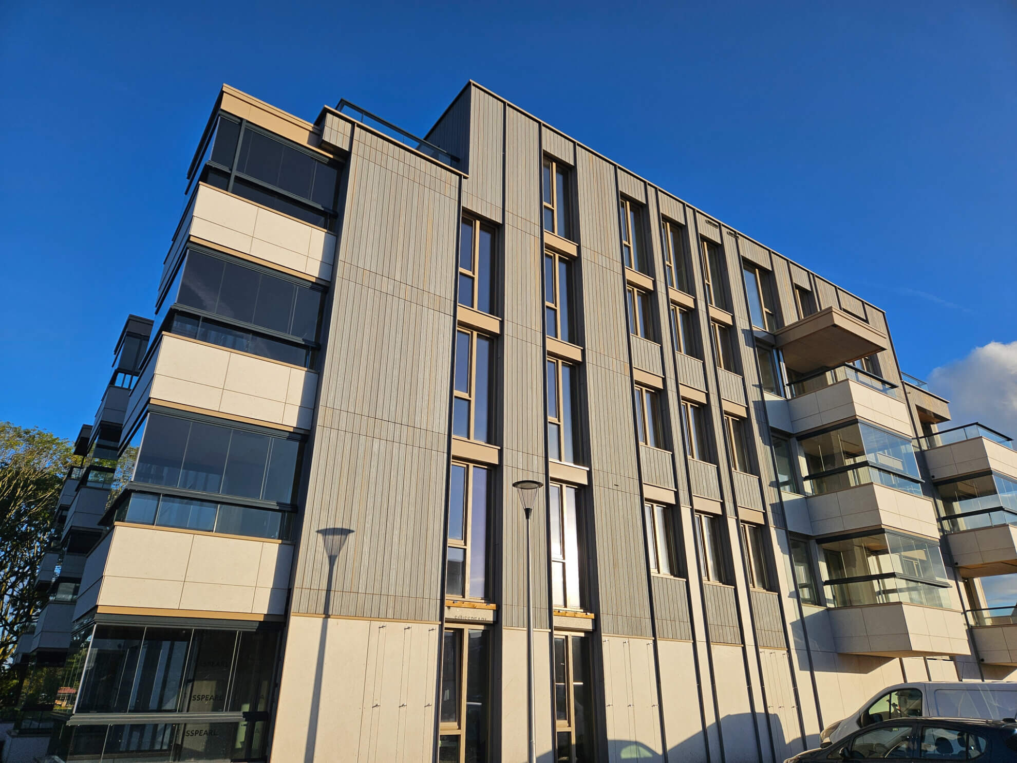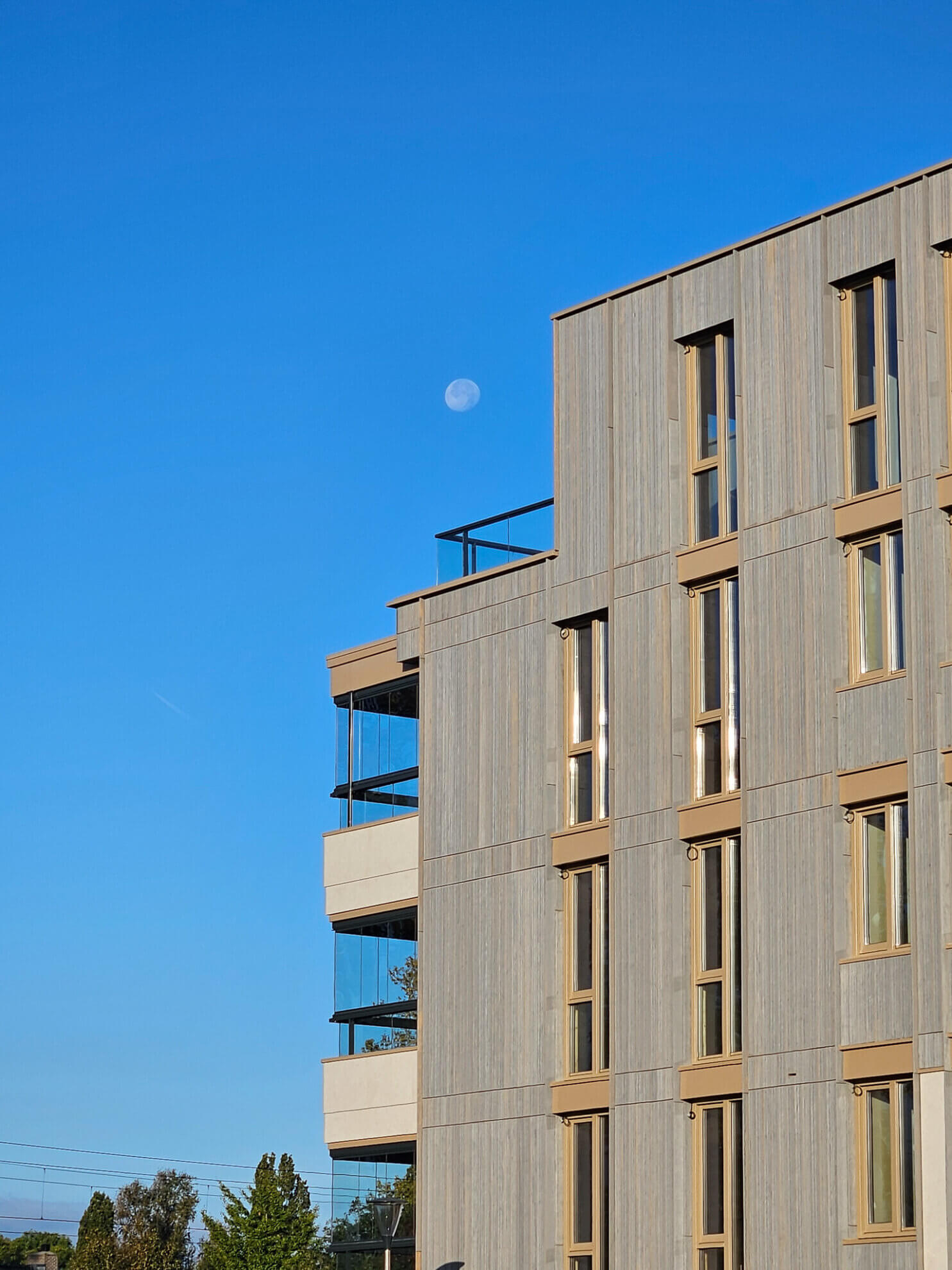 Knoest bestaat uit 29 appartementen en is volledig opgetrokken uit CLT: een sterk, veelzijdig en duurzaam materiaal. De gevel is bekleed met Platowood Fraké, gekozen om zijn warme uitstraling, stabiliteit en langdurige duurzaamheid.