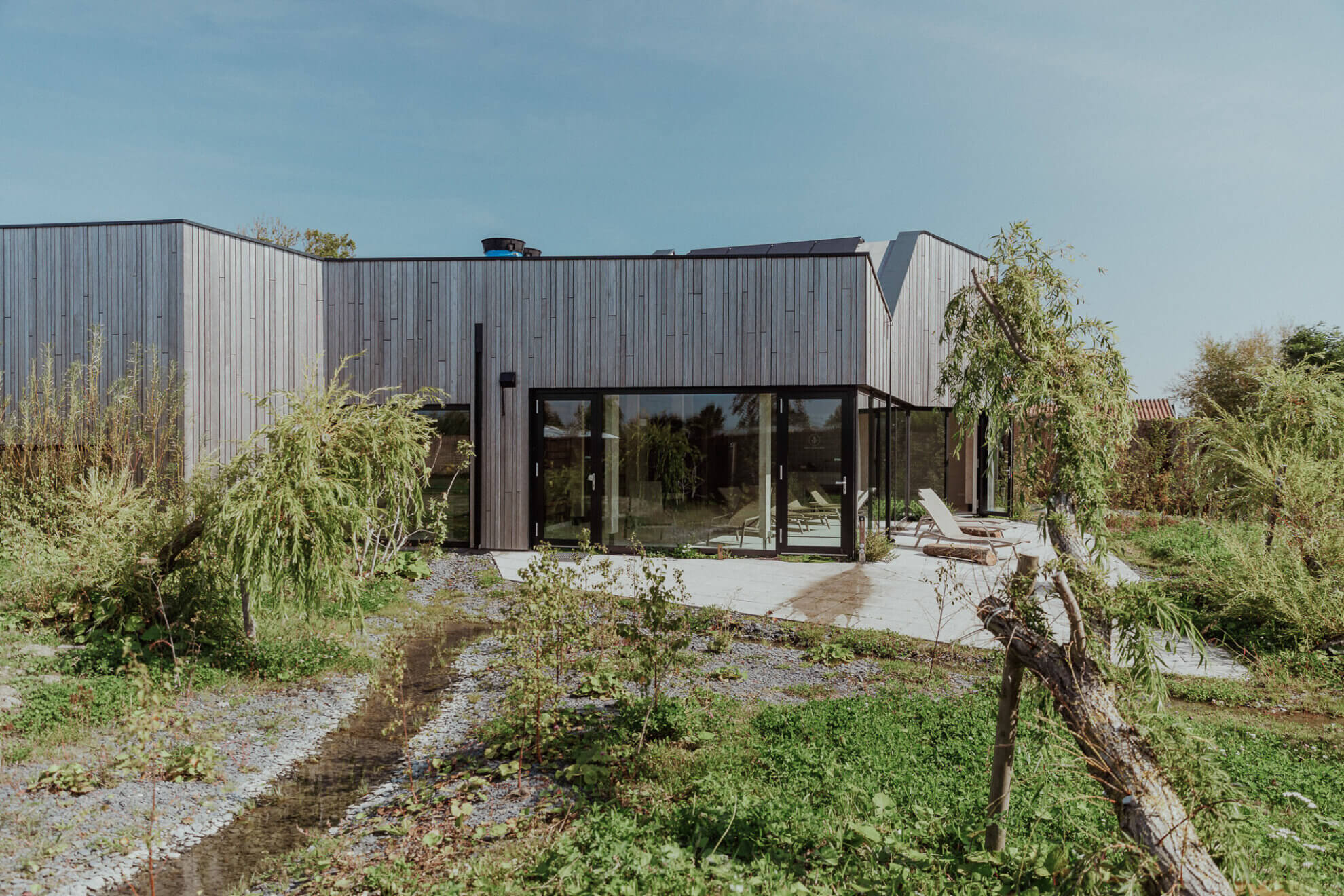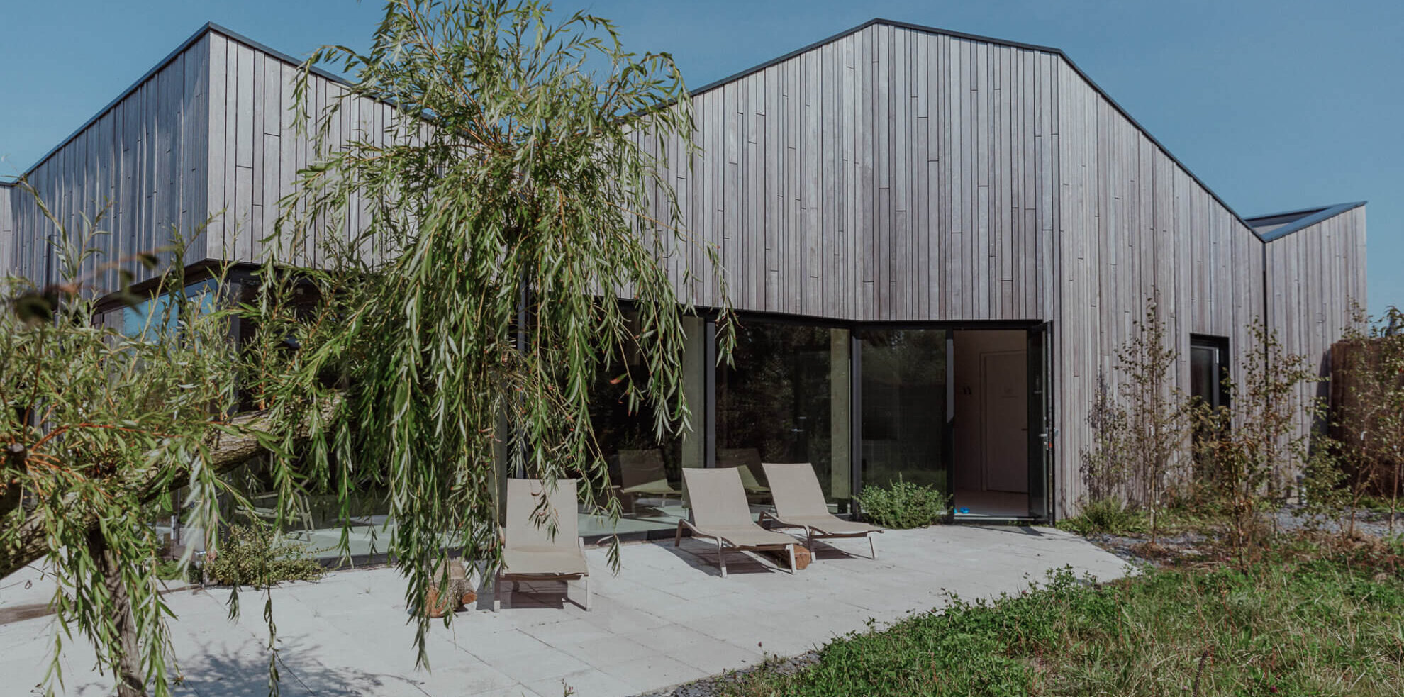 Een circulair zwemgebouw: dat was het doel van de eigenaren van ONS BUITEN. Het gebouw, bekleed met onbehandeld Platowood Fraké, staat inmiddels al 6 jaar in weer en wind.